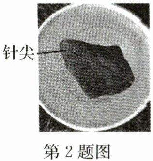 2. 科技小组自制的“树叶水罗盘”如图所示,他们将磁化后的缝衣针放在水中漂浮的一片树叶上,多次将树叶轻轻旋转,待其静止后发现针的尖端总是指向南方。缝