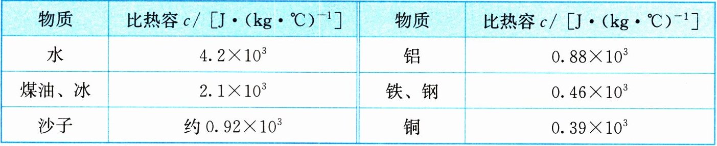 )。|物质|比热容$c/[J·(kg·℃)⁻^1]$|物质|比热容$c/[J·(kg·℃)⁻^1]$|