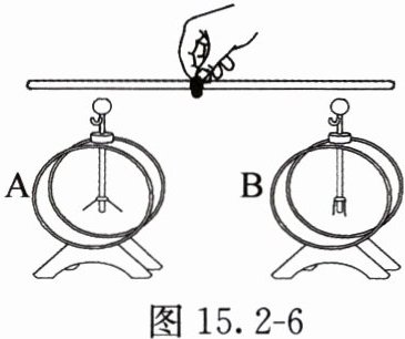 7. 如图15.2-6所示,取两个相同的验电器A和B,用与毛皮摩擦过的橡胶棒接触验电器A,使A带电,B不带电,再用带有绝缘手柄的金属棒把A和B连接起来。下列说法正确的是(
