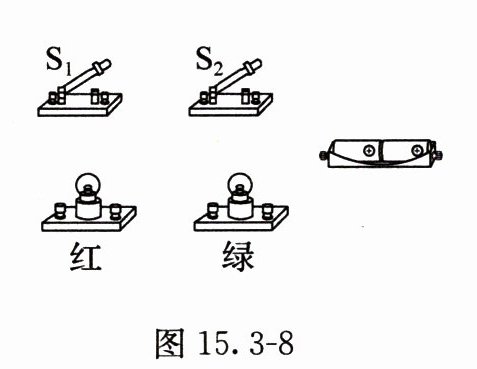 7. 根据以下要求,设计电路图,将设计好的电路图画在虚线框中,并在图15.3-8中用笔画线表示导线连接相应的实物电路,注意连线不要交叉。要求: