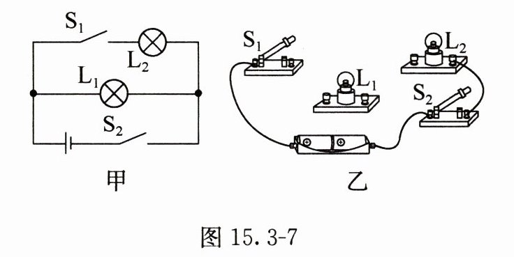 6. 根据图15.3-7甲的电路图,用笔画线表示导线,把图15.3-7乙中的实物连接起来,连线不要交叉。