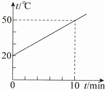解(1)由题图可知,前10 min内该物质的温度变化量$\Delta t=t-t_{0}=50\ {\hspace{0pt}}^{\circ }C-20\ {\hspace{0pt}}^{\circ }C=30\ {\hspace{0pt}}^{\circ }C$。 (2)该物质的质量$m=100\ g=0.1\ kg$,该物质的比热容$c=\frac{Q_{吸}}{m\Delta t}=\frac{8.4× 10^{3}\ J}{0.1\ kg× 30\ {\hspace{0pt}}^{\circ }C}=2.8× 10^{3}\ J/(kg·{\hspace{0pt}}^{\circ }C)$。 (3)由题意可知,水吸收的热量$Q_{水吸}=Q_{吸}=8.4× 10^{3}\ J$,水升高的温度$\Delta t'=\frac{Q_{水吸}}{c_{水}m_{水}}=\frac{8.4× 10^{3}\ J}{4.2× 10^{3}\ J/(kg·{\hspace{0pt}}^{\circ }C)× 0.5\ kg}=4\ {\hspace{0pt}}^{\circ }C$。