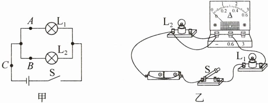 (1)测量A点电流时,小华连接的实物电路如图15.5-11乙所示,图中有一根导线连接错误,请在错误的导线上画“×”,并补画出正确的导线,注意导线不能交叉。
