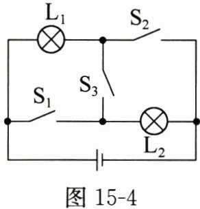 4. (湖南长沙中考)下列操作能使图 15 - 4 中的小灯泡$ L_{1} 和 L_{2} $组成串联电路的是(