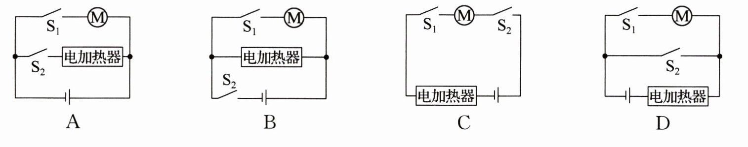 3. (湖南长沙中考)“浴霸”里的电加热器和换气扇能独立工作、互不干扰,图 15 - 3 中符合要求的电路是(