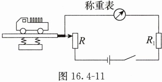 11. 高速公路收费站对过往的货车实施计重收费,某同学结合所学物理知识设计的计重秤原理如图16.4 - 11所示(电源两端电压一定)。下列说法正确的是(