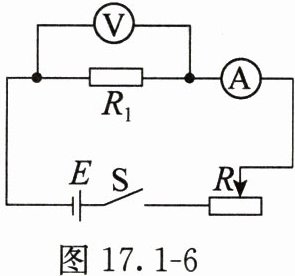 9. 小聪用如图17.1-6所示的电路探究电流与电阻的关系。将电阻为5Ω的定值电阻接入电路后,闭合开关,调节滑动变阻器的滑片,电压表的示数为U;用电阻为10Ω的定值电阻替换电阻为5Ω的定值电阻后,应调节滑片,使电压表的示数为