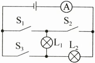 (2)当仅闭合开关$S_2$和$S_3$时,通过灯$L_1、$$L_2$的电流。
