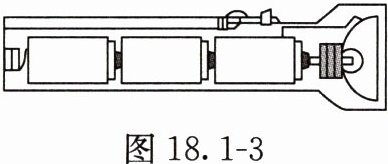 7. 如图18.1 - 3所示,手电筒中的电流为0.6 A,电源为3节新干电池,则该手电筒中的小灯泡工作1 min消耗的电能约为(