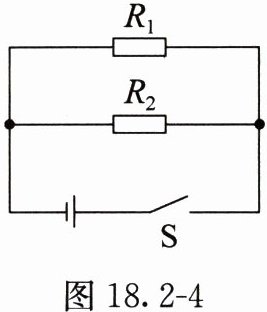 9. 如图18.2 - 4所示的电路中,电源电压保持不变,一个定值电阻的电阻$R_{1}$为12Ω,闭合开关S,通过电阻为$R_{1}$的定值电阻的电流为0.5A,电路中的总电流为0.6A。求: