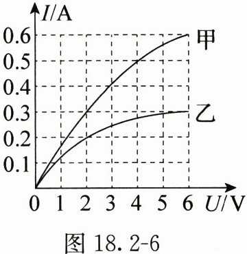 4. (多选)额定电压均为6V的甲、乙两灯的I-U图像如图18.2-6所示,下列说法正确的是(