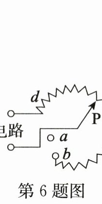 6. 收音机上用来调节音量的电位器实质上是一种______,其内部结构如图所示。若滑片P顺时针转动,则接入电路的电阻丝长度______(选填“变长”或“变短”)。若要使收音机工作时的音量(电流)最大,则滑片P应置于点______(选填“a”“b”“c”或“d”)。