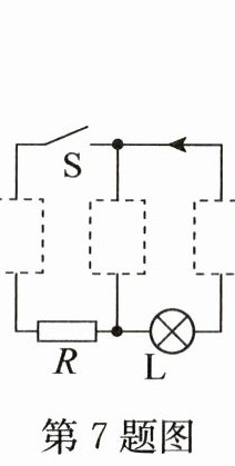 7. 将电源、电流表、电压表三个元器件的正确符号填入虚线框内,要求开关S闭合后,电流方向如图所示,电压表测量小灯泡两端的电压。