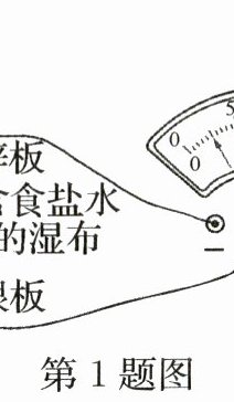1. 意大利人伏打发明了最早的电池——伏打电堆,小明同学仿造了一个伏打电堆,并用电压表测量其电压,如图所示。此电池的正极是______(选填“锌板”或“银板”),伏打电堆在使用时将______能转化为______能。