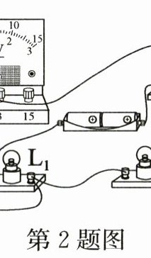 2. 如图所示的电路中,当开关S闭合时$,L_1、$$L_2$两个小灯泡是_________(选填“串”或“并”)联的;电压表测量的是_________(选填$“L_1”$或$“L_2”)$两端的电压。