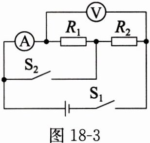 3. (多选)(河北中考)如图 18 - 3 所示,电源电压不变,只闭合开关 $ S_1 $ 时,电流表的示数为 0.4 A;断开开关 $ S_1 $,将电流表和电压表的位置互换,再将开关 $ S_1 $、$ S_2 $ 均闭合后,电流表的示数为 1 A,电压表的示数为 6 V。下列说法正确的是(
