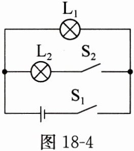 4. (湖南中考)小明给爷爷的房间设计了一个夜灯工作电路,如图 18 - 4 所示。电源电压恒为 6 V,地灯 $ L_1 $ 标有“6 V 3 W”字样,床灯 $ L_2 $ 标有“6 V 6 W”字样。