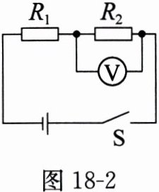 2. (安徽中考)如图 18 - 2 所示,电源两端的电压为 6 V,其中一个定值电阻的电阻 $ R_2 $ 为 20 Ω,闭合开关 S,电压表示数为 4 V,则通电 100 s 整个电路产生的热量为
