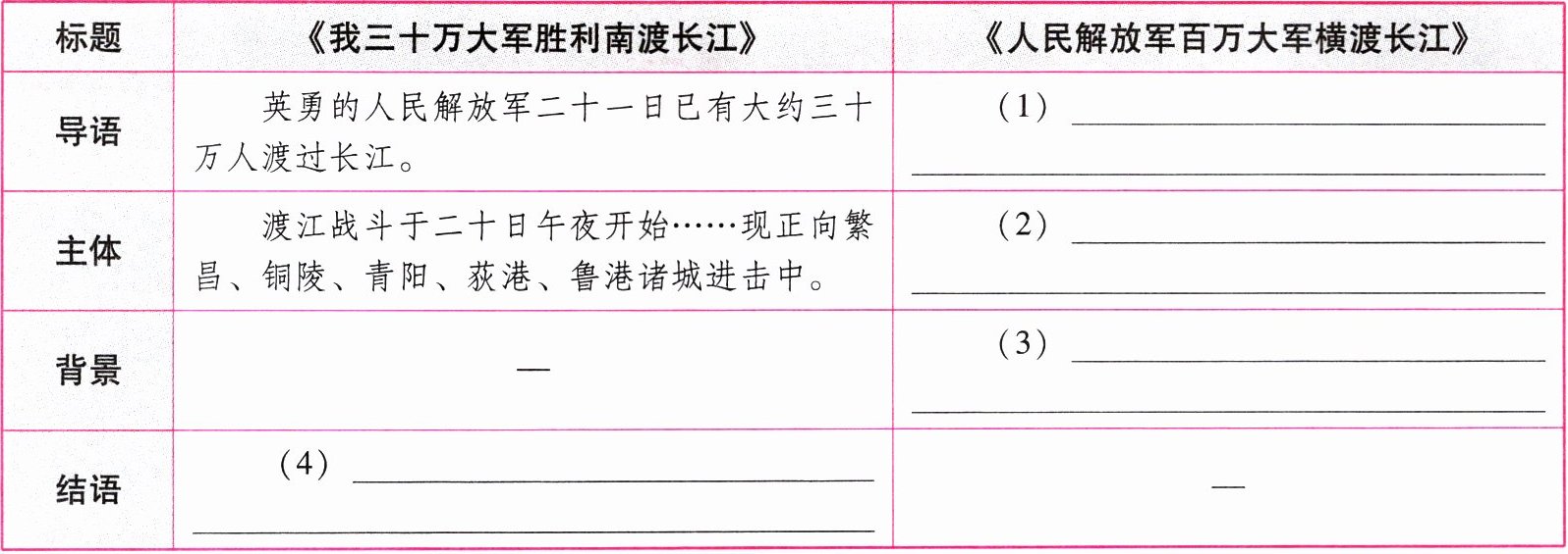 |导语|英勇的人民解放军二十一日已有大约三十万人渡过长江。|(1)______|