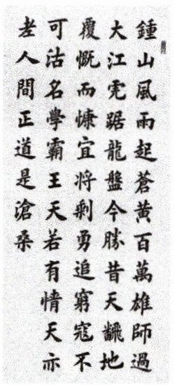 1. 下面这幅以毛泽东的《七律·人民解放军占领南京》为内容的书法作品中,哪一句诗可以作为本课第二则消息的标题?请将其用简化楷体工整地写在下面的田字格内。