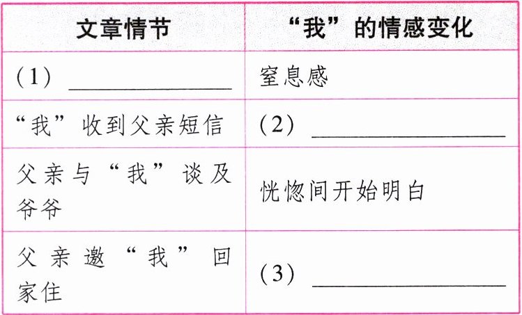 |父亲邀“我”回家住|(3)______|