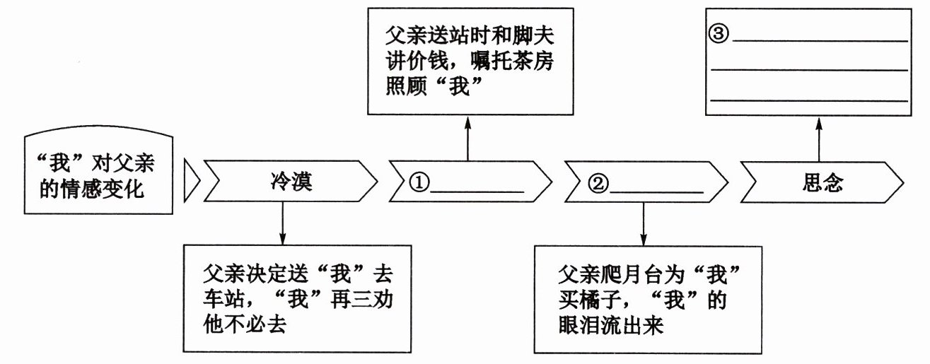 3. 请你结合全文内容,将“我”对父亲的情感变化图补充完整。