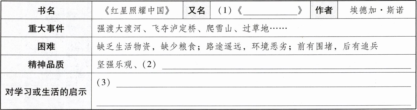 4.下面是小语同学阅读《红星照耀中国》后,给书中的“长征”部分做的一个阅读记录卡,