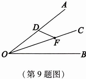 9. 如图,$OC$是$\angle AOB$的平分线,点$D$在射线$OA$上,点$E$在射线$OB$上,点$F$在射线$OC$上,连结$DF$,$EF$。请你添加一个条件,使$\triangle OFD≌\triangle OFE$。