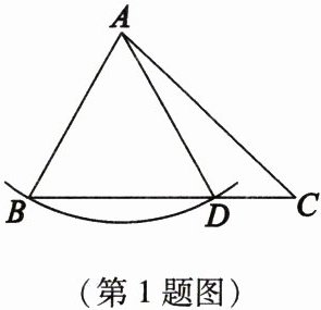 1. 如图,在 $ \triangle ABC $ 中,以点 $ A $ 为圆心,线段 $ AB $ 的长为半径画弧,交 $ BC $ 于点 $ D $,连结 $ AD $. 若 $ AB = 5 $,则 $ AD $ 的长为