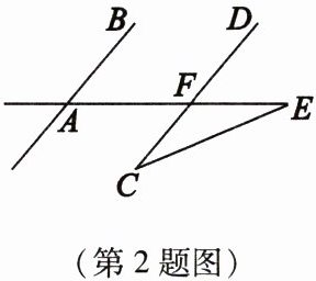 2. 某城市几条道路的位置关系如图所示,道路 $ AB // CD $,道路 $ AB $ 与 $ AE $ 的夹角 $ \angle BAE = 50° $. 城市规划部门想新修一条道路 $ CE $,要求 $ CF = EF $,则 $ \angle E $ 的度数为(