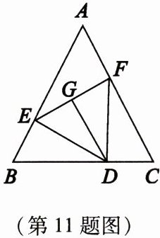 11. 如图,在$\triangle ABC$中,$AB = AC$,$D$是$BC$边上一点,$E$、$F$分别为$AB$、$AC$上的点,且$BD = CF$,$CD = BE$,$G$为$EF$的中点.求证:$DG\perp EF$.