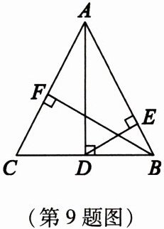 9. 如图,在$\triangle ABC$中,$AB = AC$,$AD\perp BC$于点$D$,$DE\perp AB$于点$E$,$BF\perp AC$于点$F$.若$DE = 4$,则$BF$的长度为(