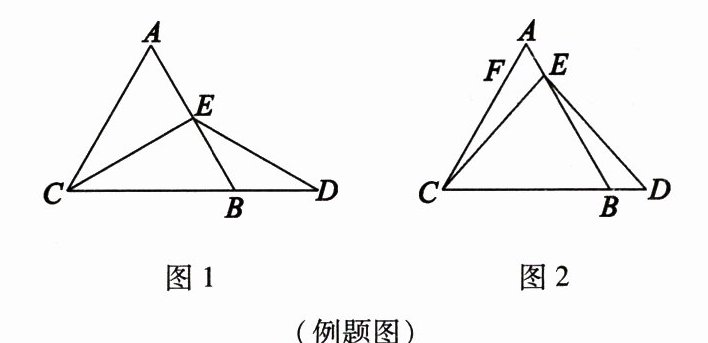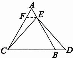 例题 在等边三角形ABC中,E是AB上的动点,点E与点A、B不重合,点D在CB的延长线上,且EC=ED.