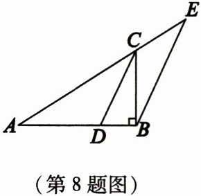 8. 如图,在Rt△ABC中,∠ABC=90°,在AB上取点D,使AD=CD,过点B作BE//CD,交AC的延长线于点E.