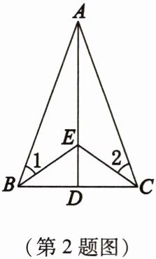 2. 如图,在$\triangle ABC$中,$AB = AC$,$D$是$BC$的中点,点$E$在$AD$上,