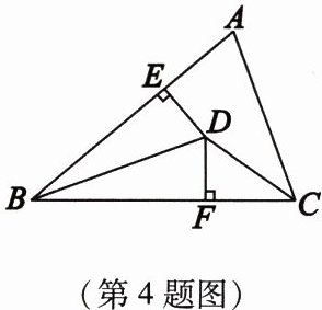 4. 如图,在$\triangle ABC$中,$BD$平分$\angle ABC$,$CD$平分$\angle ACB$,$DE\perp AB$于点$E$,$DF\perp BC$于点$F$。