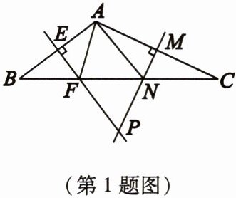 1. 如图,在△ABC 中,∠BAC>90°,AB 的垂直平分线分别交 AB、BC 于点 E、F,AC 的垂直平分线分别交 AC、BC 于点 M、N,直线 EF、MN 交于点 P.