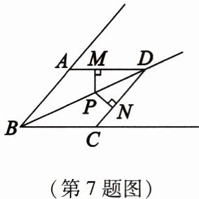 7. 如图,已知 BD 为∠ABC 的平分线,AB=BC,点 P 在 BD 上,PM⊥AD 于点 M,PN⊥CD 于点 N. 求证:PM=PN.