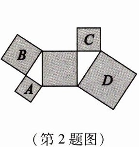 2. 如图,所有阴影四边形都是正方形,所有三角形都是直角三角形,若正方形A、B、D的面积依次为6、10、24,则正方形C的面积为(