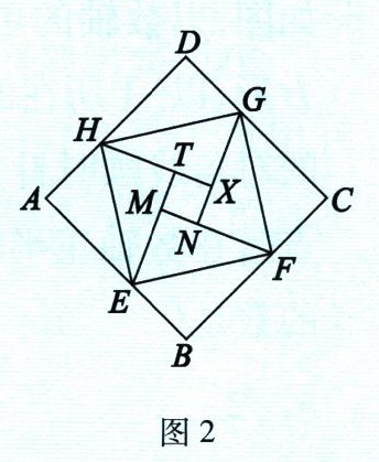 勾股定理被记载于我国古代的数学著作《周髀算经》中,汉代数学家赵爽为了证明勾股定理,创制了一幅如图1所示的“弦图”,后人称为“赵爽弦图”. 图2由弦图变化得到,它是由八个全等的直角三角形拼接而成的. 记图中正方形ABCD、正方形EFGH、正方形MNXT的面积分别为$S_{1}$、$S_{2}$、$S_{3}$,若正方形EFGH的边长为4,求$S_{1}+S_{2}+S_{3}$的值.