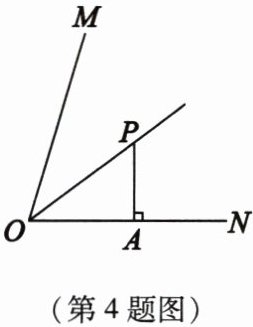 4. 如图,OP平分∠MON,PA⊥ON,垂足为点A,且OP=5,OA=4,则点P到OM的距离为