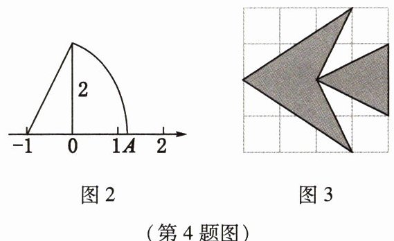 .(2)如图 2,以数轴的单位长度的线段为边作一个直角三角形,以数轴上表示 $ -1 $ 的点为圆心,直角三角形的最长边为半径作弧,交数轴正半轴于点 $ A $,那么点 $ A $ 表示的数是