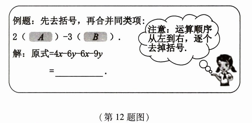 12. 如图是一道例题及部分解答过程,其中$A$、$B$分别是两个关于$x$、$y$的二项式。