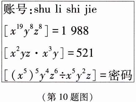 | $[(x^{5})^{5}y^{4}z^{6}÷ x^{5}y^{2}z]=$密码 |