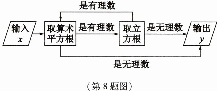 8. 如图所示的运算程序中,当输入 $x$ 的值是 $64$ 时,输出的 $y$ 值是(