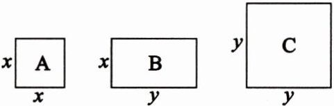 7. 数形结合是解决数学问题的重要思想方法. 在学习因式分解时,我们可以借助直观、形象的几何模型来求解. 下面共有三种卡片:A 型卡片是边长为 $x$ 的正方形;B 型卡片是长为 $y$、宽为 $x$ 的长方形;C 型卡片是边长为 $y$ 的正方形。