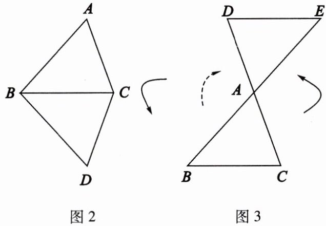在图 2 中,把△ABC 沿直线 BC 翻折 180°,得到△DBC.