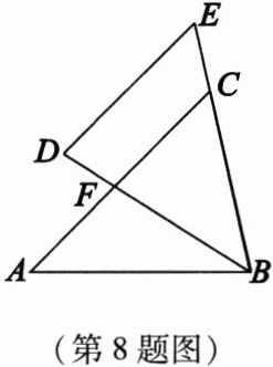8. 如图,△ABC≌△BDE,AC 和 BC 的对应边分别是 BE 和 DE,则与∠BFC 相等的角是(