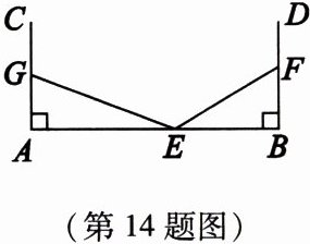 14. 如图,∠A = ∠B = 90°,AB = 80,E 和 F 分别为线段 AB 和射线 BD 上的点,若点 E 从点 B 出发向点 A 运动,同时点 F 从点 B 出发向点 D 运动,点 E 和点 F 的运动速度之比为 2:3,运动到某时刻点 E 和点 F 同时停止运动. 在射线 AC 上取一点 G,使△AEG 与△BEF 全等,则 AG 的长为