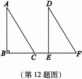 12. 如图,点 B、C、E、F 在同一条直线上,AB⊥BC 于点 B,△DEF≌△ABC,且 BC = 6,CE = 3.
